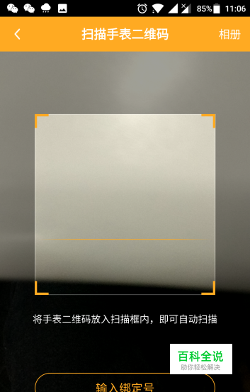 手机摄像头对准说明书或手表上的二维码,即可完成绑定。