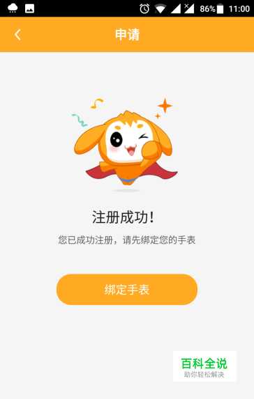 恭喜你注册成功了。点击“绑定手表”按钮,可以开始绑定手表。