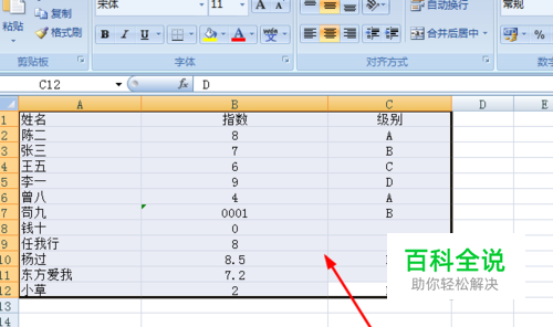 返回表格查看,空值的单元格的颜色发生了变化,而且选中了第一个空值单元格。