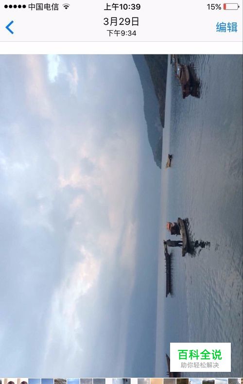 苹果手机自带的旋转图标只能往一个方向旋转,所以点一下的效果如下图,这个时候就需要根据图片,多旋转几下了。