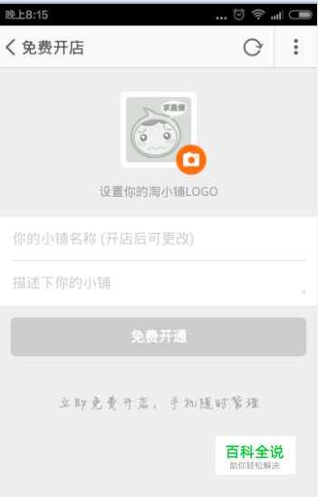 小店logo,名称,描述设置完成后,即可点亮【免费开通】功能,如下图所示。