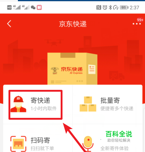 点击以后,就来到了快递寄送页面,可以看到页面有好几种下快递单的形式。我们点击“寄快递”的图标进入。