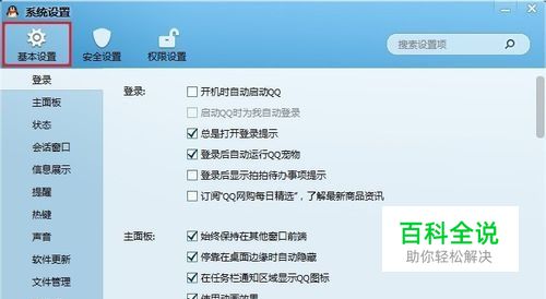点击QQ面板左下角的设置图标进入设置界面,然后选择”基本设置“