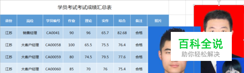 本文将以”学员考试考试成绩汇总表“为蓝本进行讲解,首先我们先看一下原始数据。通过原始数据我们可以看到,照片非常的乱而且大小不一致,在照片量很小的情况下,我们可以手工去修正,但如何照片很多呢?