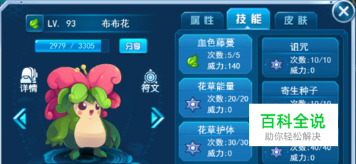 我们布布花技能如下图(注意:布布花等级大于75级即可,图中等级可忽略,下同)。准备好,开打!