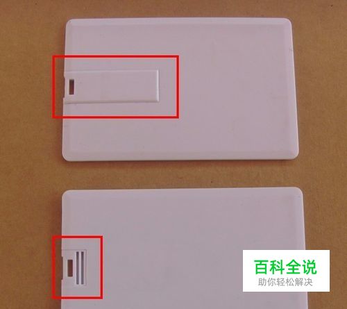 首先,我们在卡片式U盘上找到一个凸起或者有缝隙的地方,我们朝外按或者扣,卡片式U盘便会弹出USB接口,