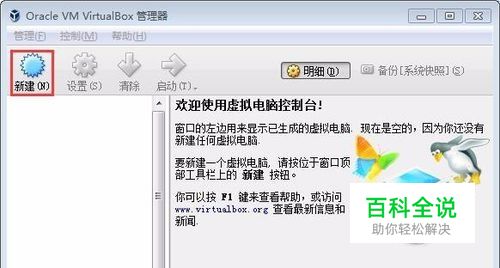 首先,启动VirtualBox,然后在其主界面单击“新建”按钮。