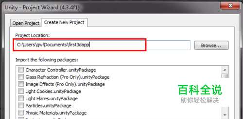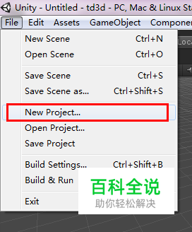 如果你是第一次使用Unity3D,则可以先打开“File”》“New Project..."新建一个项目。 在弹出的对话框中选择新的目录