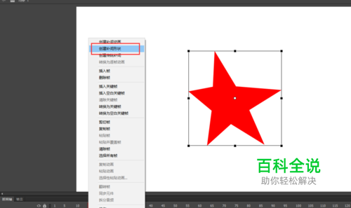 鼠标定位在时间轴第1帧与第10帧之间的任意一帧,然后右键鼠标选择创建一个补间形状动画;然后选中第一个关键帧,按住辅助间alt键将第一帧移动并复制在第20帧上,然后在第10帧与第20帧之间右键鼠标创建一个补间形状动画;这样五角星跳舞的第一个动作就完成了。