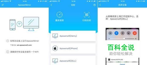 iOS 11系统的用户,可以在控制中心中点击“屏幕镜像”,点击以“Apowersoft”开头的电脑名称。