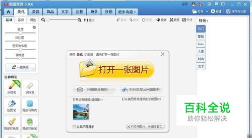 第一种办法:打马赛克。打开美图秀秀软件,点击界面上方的”美化“功能,并打开需要处理的一张图片。