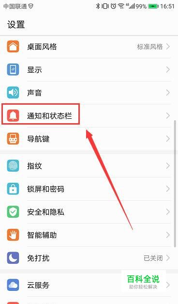 点击进入“设置”,找到“通知和状态栏”