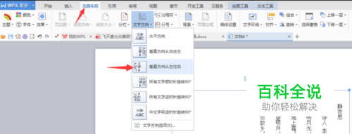 然后选择【页面布局】,选择【文字方向】-【垂直方向从左往右】。