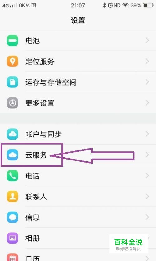 找到手机桌面的设置快捷方式,点击进入到手机设置页面,在页面上我们可以找到“云服务”。