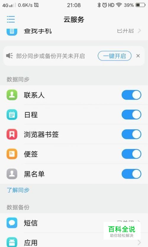 点击“云服务”,进入到云服务页面,在页面上我们可以看到“数据同步”和“数据备份”,我们可以先将手机里的数据进行同步和备份。