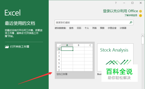 1、鼠标左键双击计算机桌面Excel2016程序图标,将其打开运行。在Excel2016程序窗口,点击“空白工作簿”选项,新建一个空白的工作簿。如图所示;