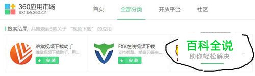 打开360浏览器,进入360应用市场,搜索“视频下载”关键字,找到视频下载神器,点击安装。