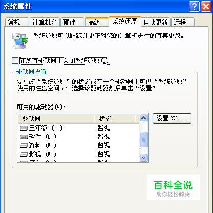 设置系统还原有一定好处,即在电脑操作中做了错误操作也能重新开机后恢复到原来的位置。