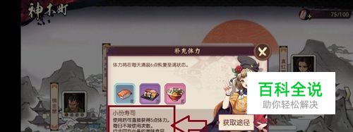 其次是可以通过使用小份寿司,使用后可直接获得5点的体力,每日不限使用次数。