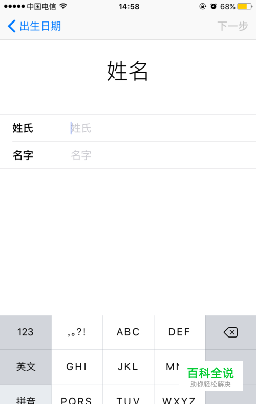 然后需要填写姓名。正确填写自己的姓名。填写好之后点击右上角的下一步。