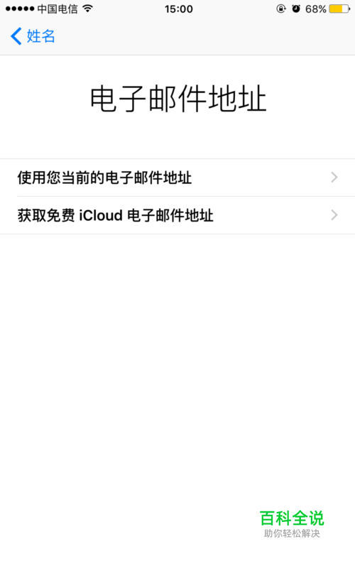 这时候需要电子邮件地址了。有两个选项。一个是使用您当前的电子邮件地址。还有一个是获取免费iCloud电子邮件地址。在这我们先选择获取免费iCloud电子邮件地址。 填写自己满意的电子邮件名称,然后点击右上角的下一步。(注意:名称开头必须是字母)
