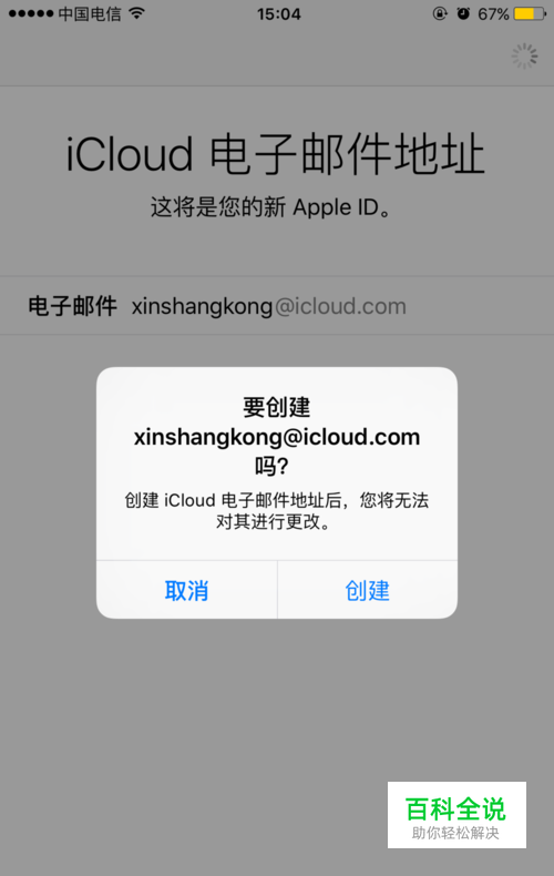 点击下一步的时候会跳出需要创建刚刚你输入的电子邮件名称。点创建。