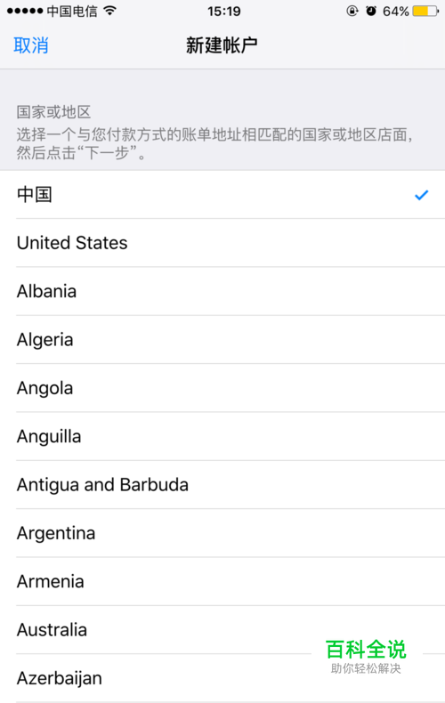 这时候跳出国家或地区。默认在中国上打了勾,直接点击右下角的下一步。