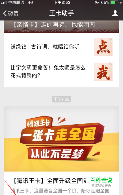 然后,我们打开王卡助手公众号页面,然后点击开通