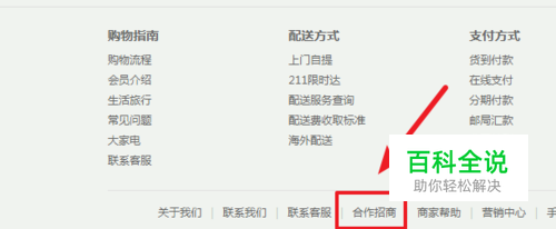 我们通过电脑浏览器进入京东首页,滑动页面到最底部,然后选择底部导航中的合作招商的选项进入。