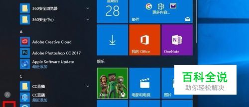 打开win10系统电脑,点击开始菜单,在弹出的开始菜单界面点击左侧的设置图标。