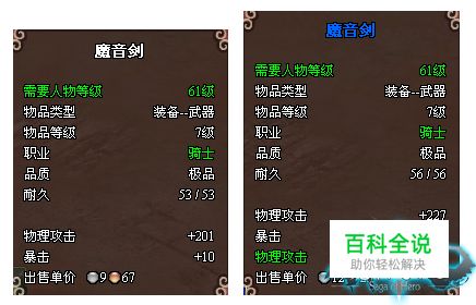 【装备品质划分】 不管是新手装备还是怪物掉落的装备都有自己的阶级。每个阶级中又区分为下品、次品、凡品、上品、极品。