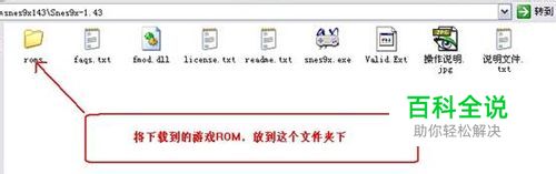 1, 将下载到的模拟器解压缩,你会看到一个roms文件夹,这里就是存放游戏ROM文件的。如图: