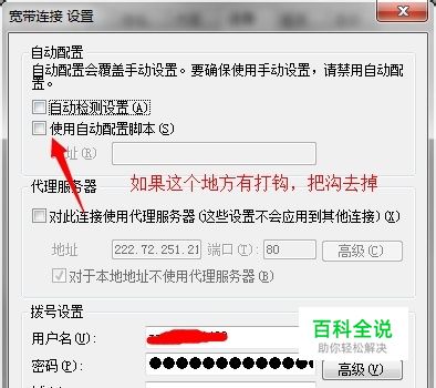 在弹出的“使用自动配置脚本”前的勾选选框,如果有打钩,也去掉。最后“确定”