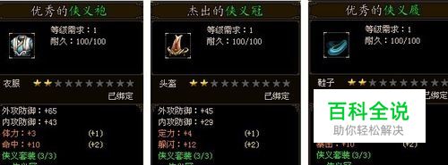 2、张老头给的新手套装也别忽视了,那个是三件的小套装,是有加成作用的,比普通的10级前状态要好得多,记得及时换上,别让它在你的包裹里烂掉了。