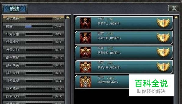 创世兵魂成就系统是玩家在体验游戏的过程中,满足成就系统的相关要求,即可获得该成就,成就系统是《创世兵魂》中的一大特色系统,不但能够体现玩家对于游戏的专精程度,还能体现出角色的荣誉值;自推出成就系统以来,受到了众多玩家的追棒。相信大家不仅仅被它神秘的色彩所吸引,更会被它独特内容玩法所倾倒。 任务成就系统是游戏内的辅助系统,每日达成不同的任务类型,可获得相应的勋章,勋章可以兑换金币、经验、积分以及不同品质的宝箱。从而在游戏过程中完成各项成就。 成就规则: 1、累积满足相应的成就条件,即可获得成就点数。 2、成就点数代表着玩家对于游戏的专精程度以及角色荣誉。 3、成就类型含括以下内容:角色成长、财富成就、任务掌握、任务精英、任务大师、战斗掌握、战斗精英、战斗大师、探索掌握、探索精英、探索大师、武器掌握、武器精英。