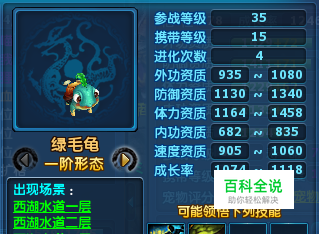 35级前:这个阶段没有什么好说的,一只系统送的宝宝可以陪你轻松到达35级,这个级别段的宝宝也没有什么特色,唯一一个可以说下的,就是 绿毛龟,这货长相卖萌,体制超高,是一个可以观赏的血宠,如果有钱,弄一只观赏还是很得MM的心的 推荐指数:★★