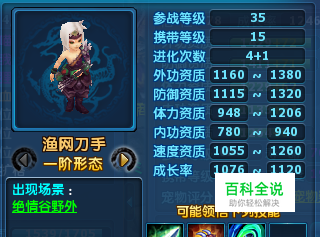 35级:渔网刀手自然是所有人都该选择的,必杀强力,两个主攻技能。攻防体 成长在35所有宝宝中最好,是卡49级之前的最好攻宠,其他35级宠物不必多说,都是抽星用的,没有亮点 推荐指数:★★