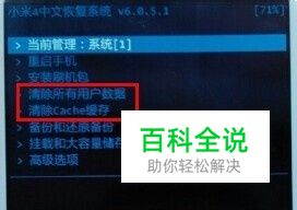 进入recovery主界面后,依次选择对手机进行双清,然后移动选择【清除所有用户数据】和【清楚Cache缓存】,然后电源键确认清除,如下图;