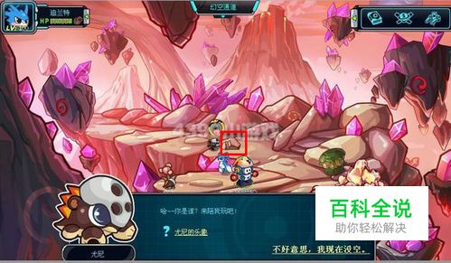 和尤尼对话,它会告诉你让你陪它玩,不过要先帮他把石头摆好,对话完成后你就可以点击图中红框中的石头来帮助尤尼将石头摆好!