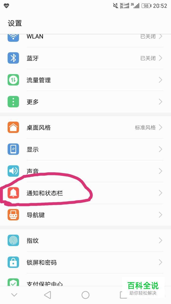 第一步:点开“设置”,在第二大栏中找到“通知和状态栏”,点击。