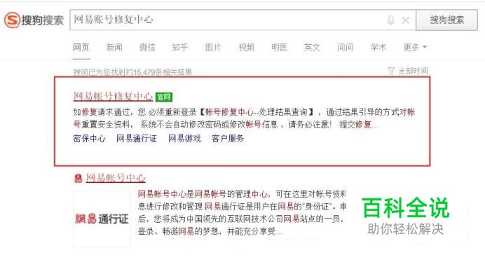 首先,我们打开搜索引擎搜索“网易账号修复中心”关键字,在搜索结果页面中,打开网易账号修复中心页面。