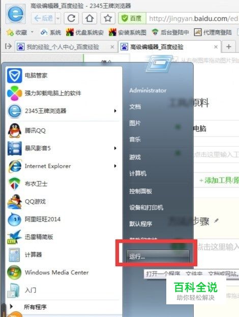 点击电脑开始菜单-运行