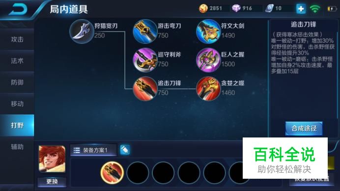 第一件装备我会选择:刀锋追击 出装理由:裴擒虎作为打野英雄应该优先考虑出打野刀(刀锋追击)。刀锋追击不仅能够提升裴擒虎打野速度和打野经验,还能为裴擒虎提供攻击速度加成。刀锋追击这件装备为裴擒虎前期发展提供了有力保障。