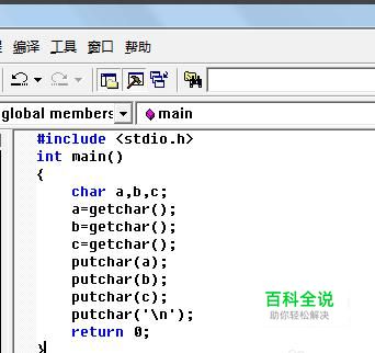 使用putchar函数将变量输出。 putchar(a); putchar(b); putchar(c); putchar('\n'); return 0;