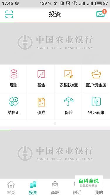 进入农行掌银首页界面,在下方列表中点击“投资”