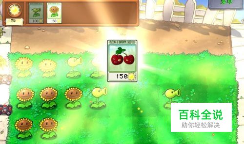 关卡:1-1 这一关没什么好说的,相当于教程关。点太阳,摆豌豆。 随便放,只要一开始别放第一格自杀就好了 过关,得到向日葵。好东西,产生阳光的,白天必备。