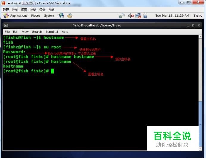 先打开linux系统,然后打开终端,按步骤输入即可 其中fishc@fish, fishc代码用户名,fish代表主机名