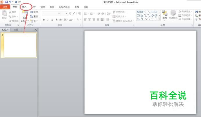 打开power point,在工具栏中找到“插入”。