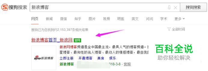 在我们的浏览器上输入“新浪博客”,如图。