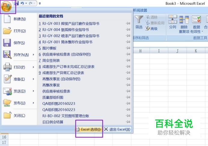 然后我们点击左上角的office按钮,弹出的界面,我们点击Excel选项;
